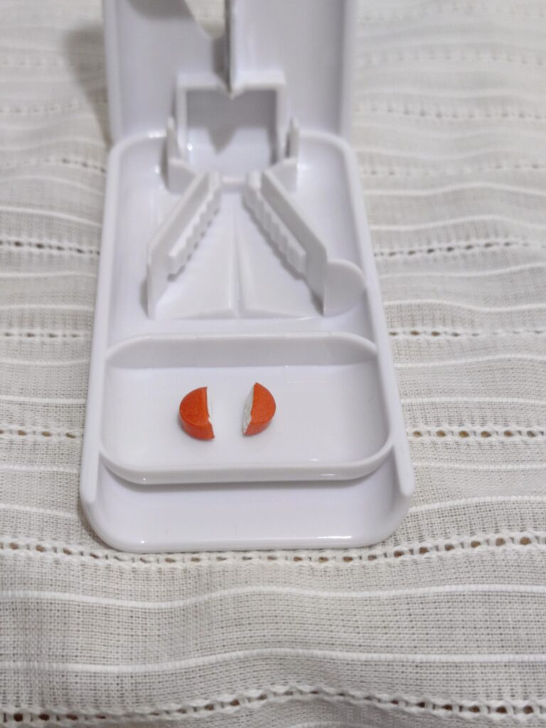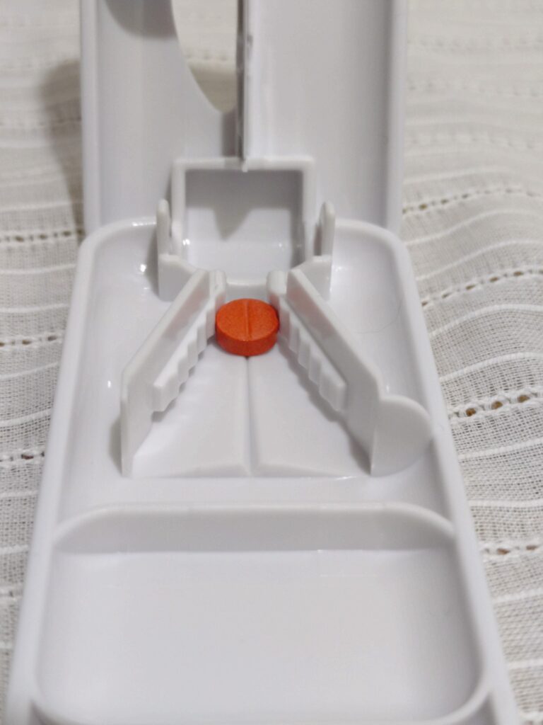 フィナロイドの錠剤は小さいため、安価なピルカッターを使うと、刃の位置が安定せずにブレてしまい、錠剤が粉々になったり、砕けすぎて正確な0.25mgに分割できなくなるリスクがあります。