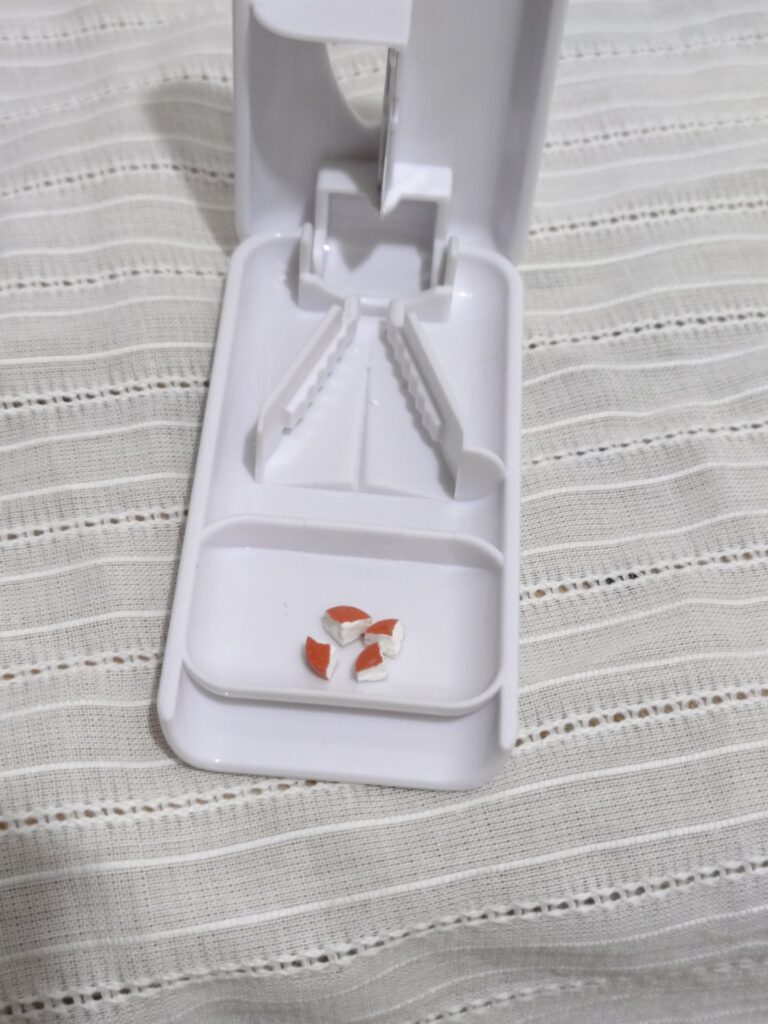 - 切れ味が良いため、錠剤が粉々になりにくく、きれいに4分割を実現。
