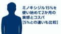 僕は現在、国内最大濃度の5%を大きく上回る、最高濃度15%のミノキシジルを使用しています。「夜だけ1回、ワンプッシュ」という独自の運用法で、ベタつきを抑えつつ強力に現場を動かしています。