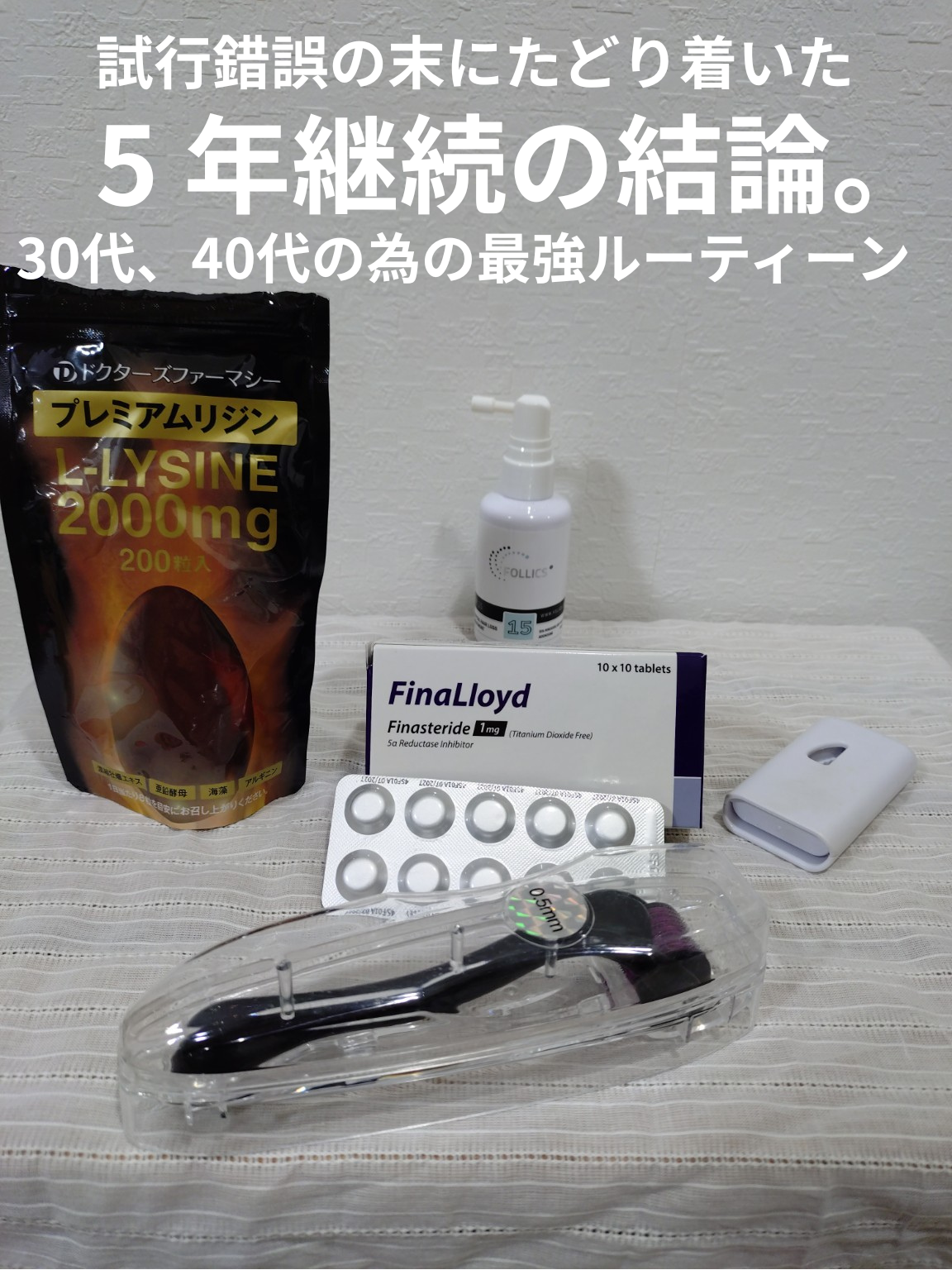 フィナステリドで守り、ダーマローラーで道を切り拓き、15%ミノキで強力に指示を出し、リジンで材料を揃える。